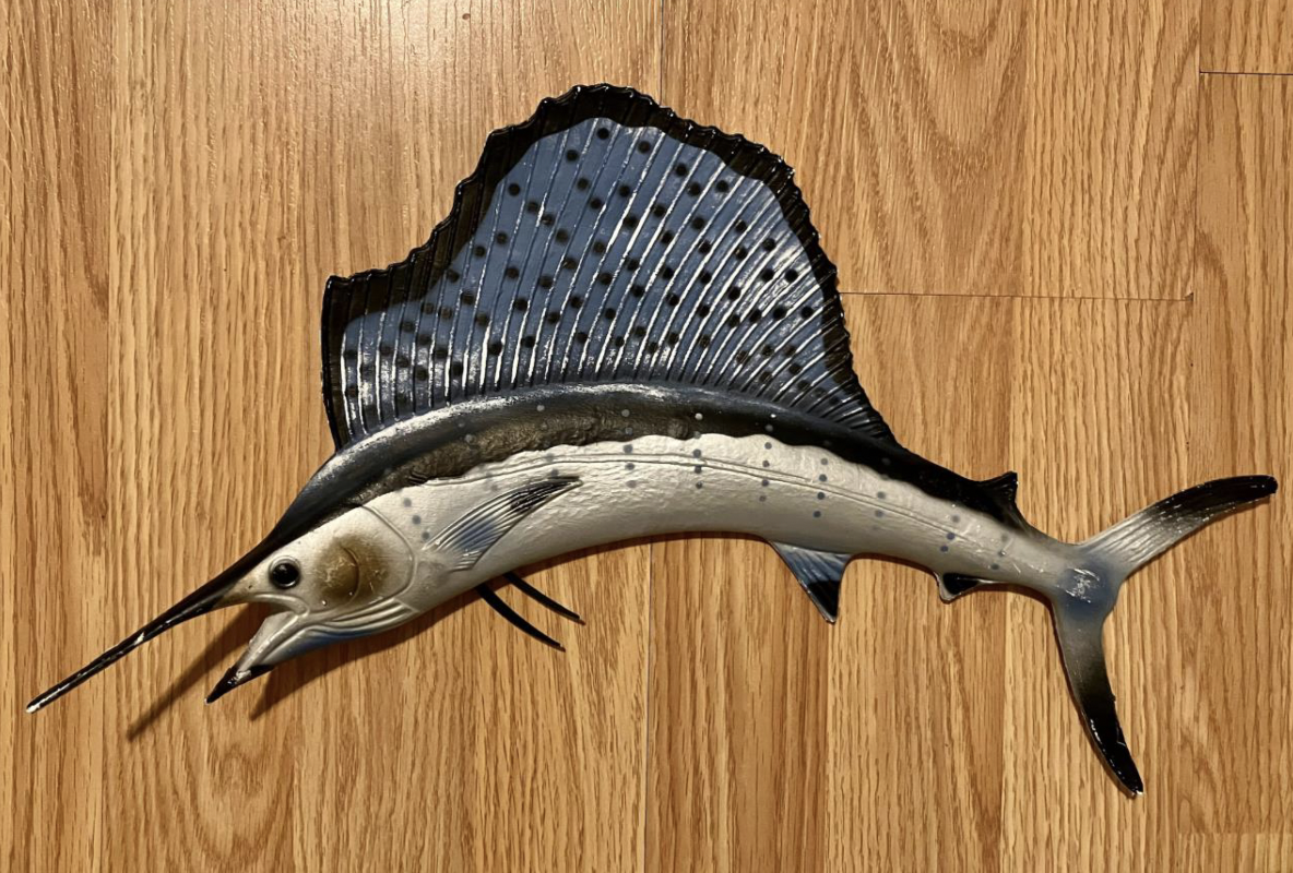 When a strangely cheerful and stylized plastic sailfish turned up in a cardboard box on my first apartment’s doorstep, I knew my father was asking me for a chance to be part of my adult life in his own way. The kitschy fish decoration hails from a set of nine others, all manufactured in the same mold, all sprayed with the same suspiciously warm paint, and all in my father’s possession for over three decades. He calls them marlins, and I know that they are sailfish. His fish decorations are intact, and my fish is missing a tailfin. His sailfish are nailed to vinyl siding on my parent’s house in California and mine hangs above the door of my Philadelphia apartment. For me, this 60-year-old fish decoration—fragile and eternal like a plastic bottle—is more than just that. The sailfish speaks to the similarities between me and my father, from our stubbornness to our mutual love of weird vintage art and our strong sense of independence. By featuring the fish (in all its glory) prominently in my home, I choose to honor my relationship with my father, while honoring my ability to define my boundaries and myself in adulthood. – Sepha S.