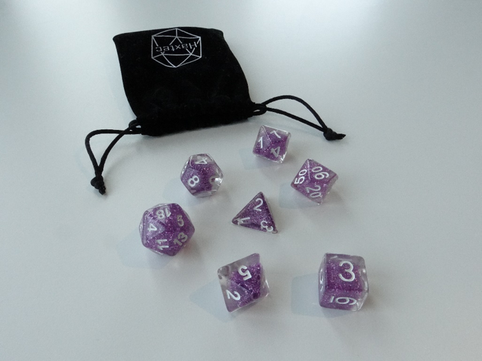 Haxtec Dice, United States, circa 2019, resin, glitter, height: 0.6”