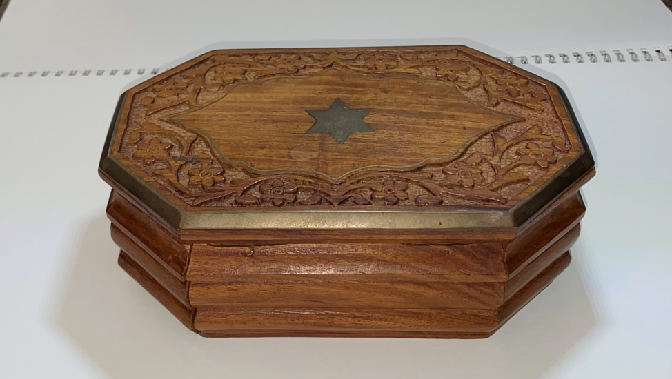 This box is a sore spot. It once protected a future with someone. Now, it scolds what could have been, its red velvet interior flashing at me. Back then, the floral relief conjured the comforting essence of the handwritten notes and small cut out photos the container held. It echoed the softness and kindness in the words written only for me. The flowers swirl and swoop around the edges of the lid, they flow with such ease and shift in shape from the handcrafted technique. Now, the sight of this makes my tongue taste like salt and I struggle to let the hurtful and deep feelings go. Even though this object is currently hurting me, it reminds me I need to change. I must remember it only follows me and will not always hurt me. – Natalia B.