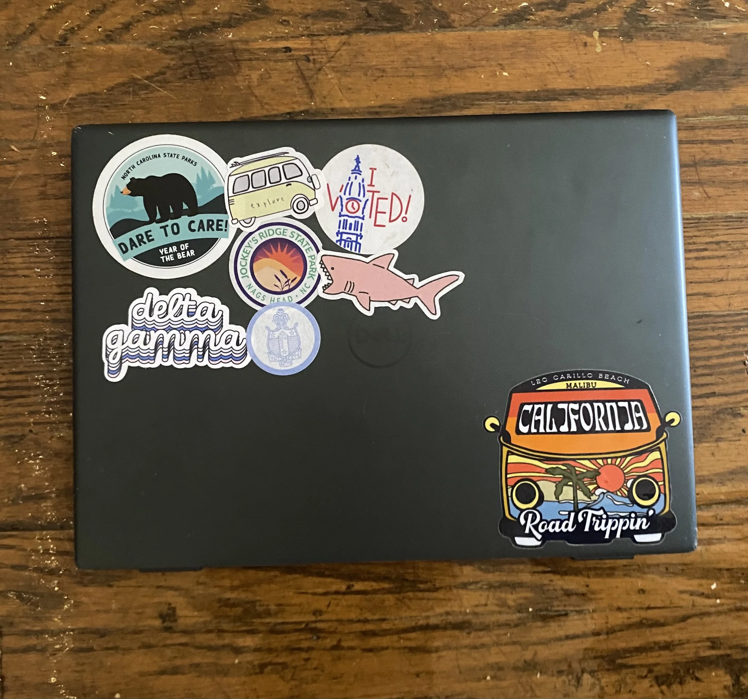 To most people, my laptop introduces me before I do. She flaunts the California sticker anchored at the bottom, my roots, and the Delta Gamma symbols that display the community I belong to. Her surface becomes a visible map of the places and identities I hold close.