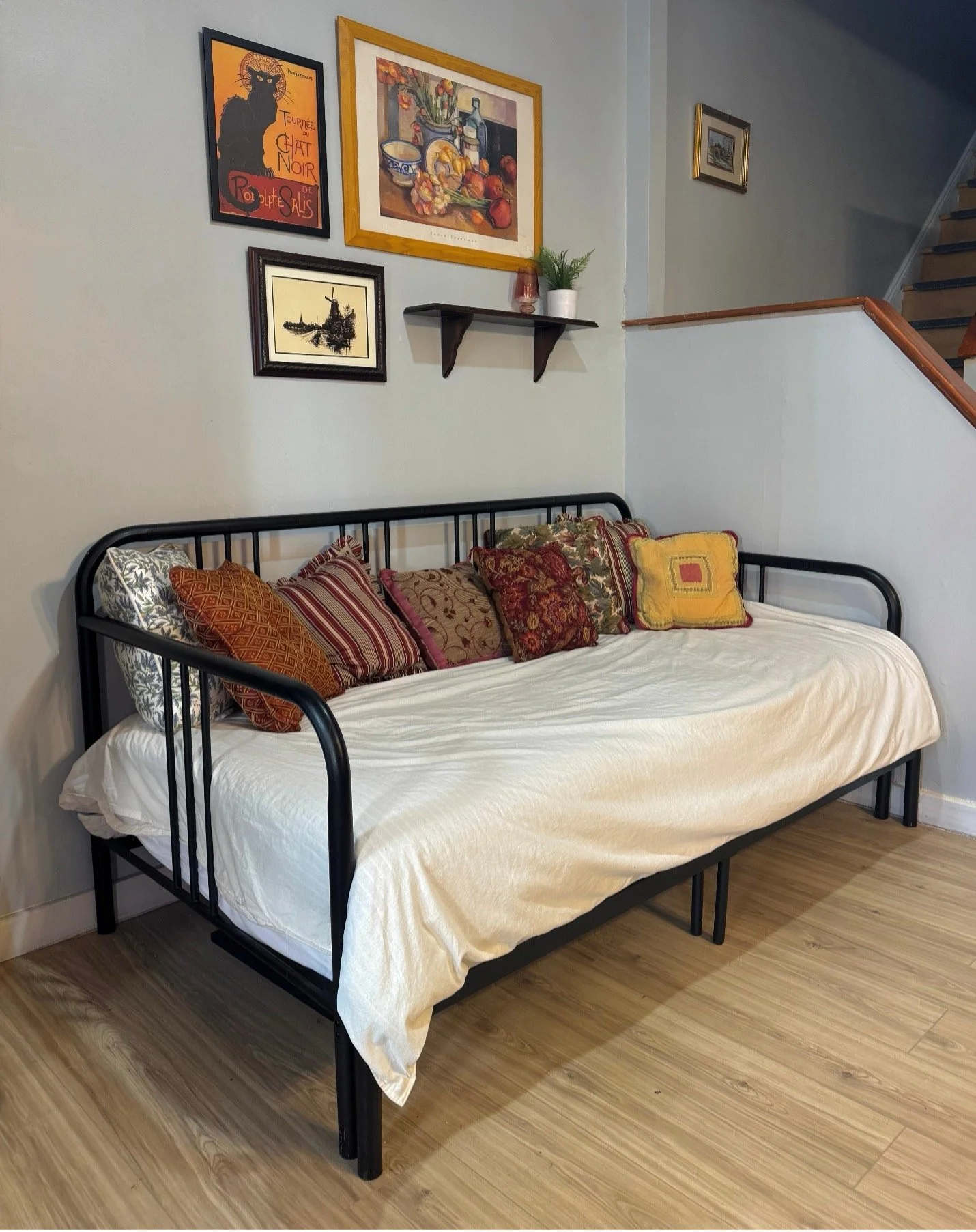 This IKEA daybed was mass-produced, but in my apartment of six it has become singular. Originally bought by a neighbor, it came to us through a quick handoff, a small moment of generosity that turned a transaction into a gift. Now, it sits by the entrance where people pile up during movie nights, band members sleep after shows, and where I end up every evening, somewhere between relaxing and falling asleep.