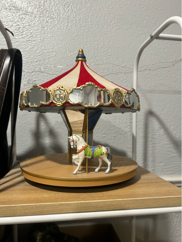 Over time, I began using it differently, placing small keepsakes on its platform and transforming the stage into one of my own design. It performs not for entertainment, but for preservation of personal culture, acting as a museum of memory. Visitors are immediately drawn to its spectacle; their attention affirms the carousel’s continual performance extends that invitation.